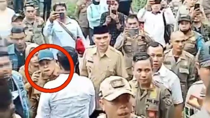 “Kami dihalangi-halangi oleh GRIB Jaya. Justru tadi dihentikan pekerjaannya. Ada hak apa ngoni (kalian) memberhentikan pekerjaan? Ada hak apa ngoni (kalian) beken (buat) rugi negara?” imbuhnya.