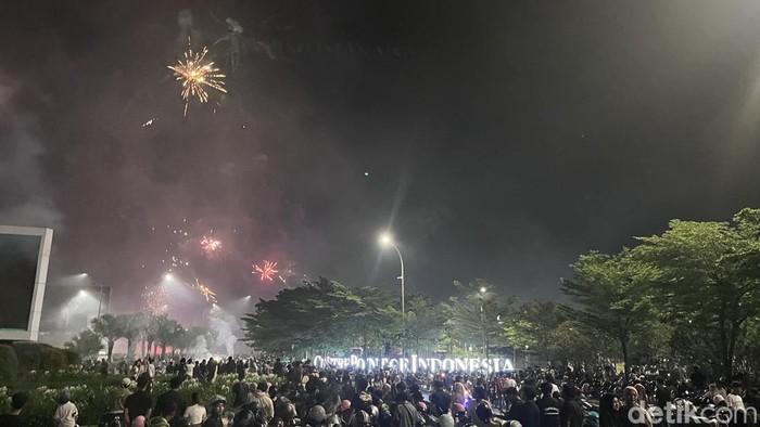 Center Point of Indonesia (CPI) Makassar, Sulawesi Selatan (Sulsel), menjadi salah satu pusat keramaian saat menyambut tahun baru 2026. Warga rela menembus kemacetan demi merayakan tahun baru yang disemarakkan kembang api.